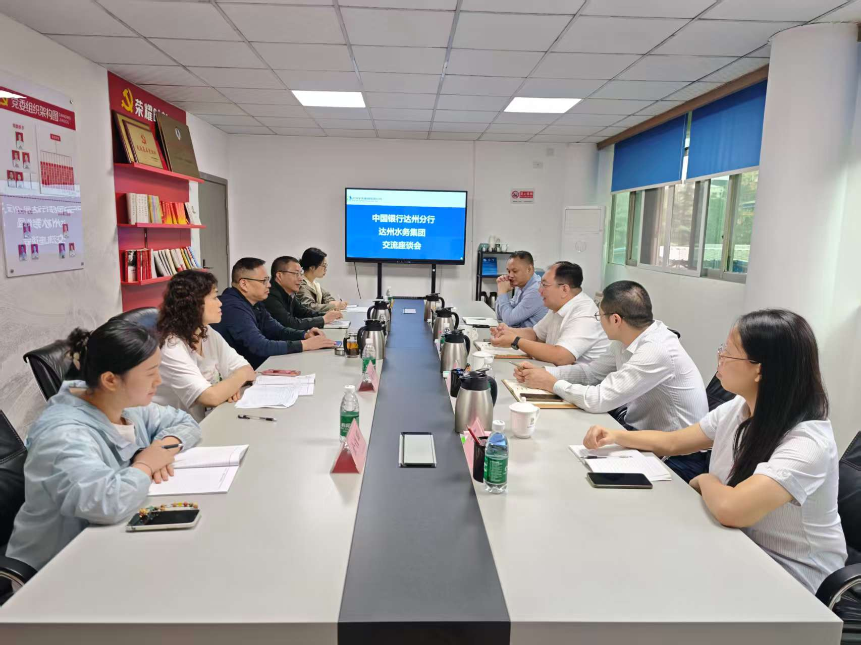 2025年9月23日上午,達(dá)州水務(wù)集團(tuán)與中國銀行達(dá)州分行成功舉行銀企交流座談會。集團(tuán)黨委書記、董事長盧輝,黨委委員、副總經(jīng)理兼財務(wù)總監(jiān)朱亞成;中國銀行達(dá)州分行黨委書記、行長王歡,副行長吳波等參加會議。雙方重點圍繞深化戰(zhàn)略合作、推動互利共贏、助力地方民生與經(jīng)濟發(fā)展等方面進(jìn)行了深入交流。