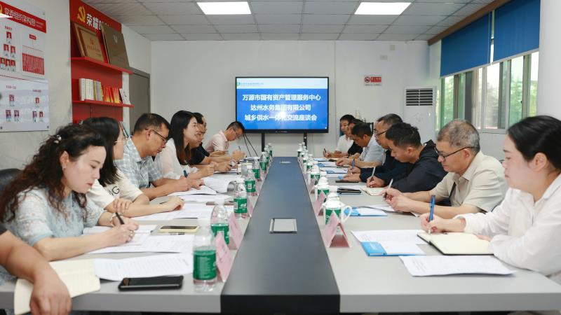 10月10日,萬源市國有資產管理服務中心聯合萬源市水務局、市城投公司、市農投公司和市時潤供排水公司一行7人來我司考察交流城鄉供水一體化運營管理工作。集團黨委委員、副總經理李莉君,相關部門、子公司參加會議。